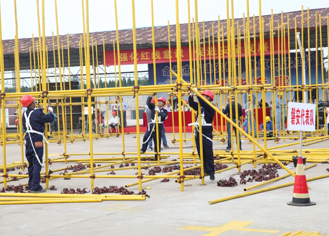 到了比賽那天上午,陳科長(zhǎng)早早地與參賽隊(duì)伍一同前往比賽現(xiàn)場(chǎng),并對(duì)他們給予了熱情的鼓舞和殷切的期望。我們參賽代表隊(duì)也毫不示弱,從隊(duì)員到領(lǐng)隊(duì),個(gè)個(gè)統(tǒng)一著裝,精神抖擻,為公司榮譽(yù)奮力一戰(zhàn)。在上午現(xiàn)場(chǎng)腳手架搭設(shè)比賽中,參賽選手們沉著冷靜,配合默契,各司其職,搭設(shè)的搭設(shè),背鋼管的背鋼管,有條不紊,井然有序的搭設(shè)腳手架。經(jīng)過(guò)理論考試與實(shí)踐操作的激烈角逐,我公司榮獲了三等獎(jiǎng)殊榮。值得一提的是,此次比賽中,由楊偉同志編制的施工方案以絕對(duì)的高分,遙遙領(lǐng)先其它參賽隊(duì)伍,得到了評(píng)委領(lǐng)導(dǎo)的高度評(píng)價(jià),獲得了方案的第一名。我們架子工老板姚德金親自上陣參加比賽,他奮勇拼搏的精神,贏得了現(xiàn)場(chǎng)裁判和其他參賽選手的尊重。(綜合辦 劉月麗)