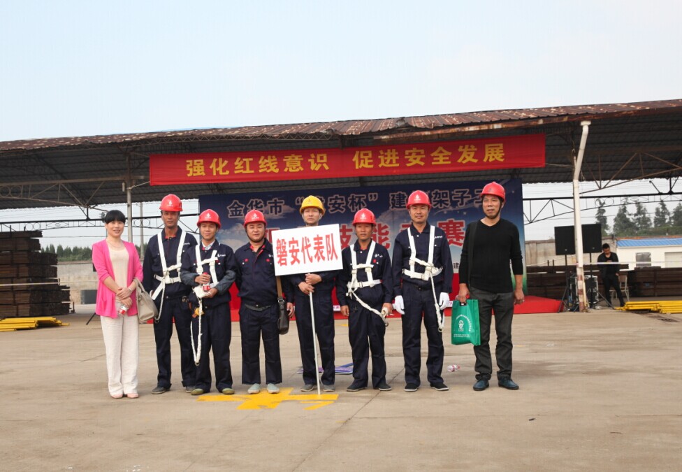 此次比賽由金華市住房和城鄉(xiāng)建設(shè)局、金華市人力資源和社會(huì)保障局、金華市總工會(huì)聯(lián)合主辦,11支來(lái)自金華各縣市區(qū)的參賽隊(duì)伍、44名精兵強(qiáng)將同臺(tái)競(jìng)技,一展腳手架上的絕活。金華市建設(shè)局副局長(zhǎng)孫金榮、建管處處長(zhǎng)李志余觀摩了此次比賽,并在頒獎(jiǎng)典禮上發(fā)表了重要講話(huà)。
