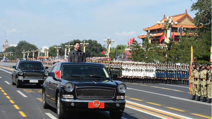 沿著車輪碾過的痕跡,一個個整齊的方隊從廣場而過,一件件高科技裝備的精彩展示,威武的氣勢隨之而來,扣動著每個人的心弦,整齊的步伐、堅定的眼神展現(xiàn)著中國軍人不屈的斗志。習主席對軍隊的檢閱,整齊劃一的軍隊大聲回應著主席的親切問候。聽到的不僅僅是“為人民服務”的口號,更是每位軍人對人民的承諾,對國家的承諾,那是用生命捍衛(wèi)的誓言,用血汗匯集而成的贊歌。
